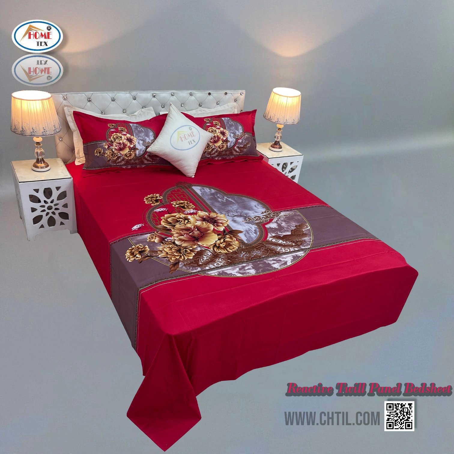 Reactive Twill Panel Double Bed Sheet-1684-799 quantity